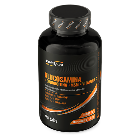 EthicSport Glucosamina + Condroitina + MSM + Vitamina C es un complemento alimenticio cuidadosamente elaborado que combina en un solo comprimido cuatro ingredientes muy apreciados: glucosamina, condroitina, MSM y vitamina C. El preparado ha sido creado pensando en personas físicamente activas y deportistas que desean cuidar de forma integral la eficiencia y el buen estado del sistema locomotor.