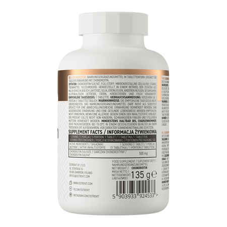 OstroVit Condroitina es un complemento alimenticio de alta calidad que contiene sulfato de condroitina. Es una formulación disponible en comprimidos fáciles de tragar y se ha desarrollado para deportistas y personas mayores.