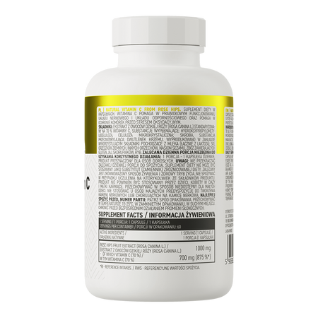 OstroVit Vitamina C natural de rosa mosqueta es un complemento alimenticio que contiene extracto de rosa mosqueta estandarizado al 70% de vitamina C. Es una fuente de ácido ascórbico disponible en cápsulas fáciles de tragar. Es un preparado de alta calidad diseñado para deportistas y personas con un mayor requerimiento de vitamina C.