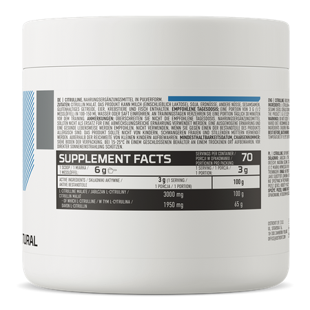 OstroVit Citrullina es un suplemento dietético de alta calidad que proporciona una fuente de malato de citrulina. Se trata de una fórmula de composición sencilla y sabor natural, disponible en un cómodo formato en polvo. Es un producto diseñado para deportistas y personas físicamente activas que desean complementar su dieta con valiosos compuestos.
