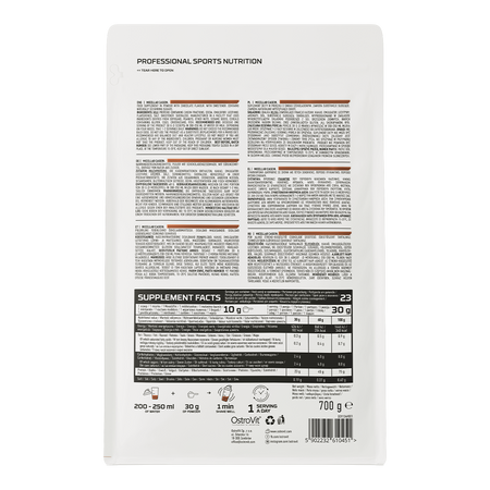 OstroVit Caseína Micelar es un suplemento dietético de alta calidad que proporciona una fuente de caseína micelar. Es una fórmula disponible en polvo, en varios sabores deliciosos, que no contiene azúcares añadidos. Es un producto diseñado para deportistas y personas con una mayor necesidad de proteínas.