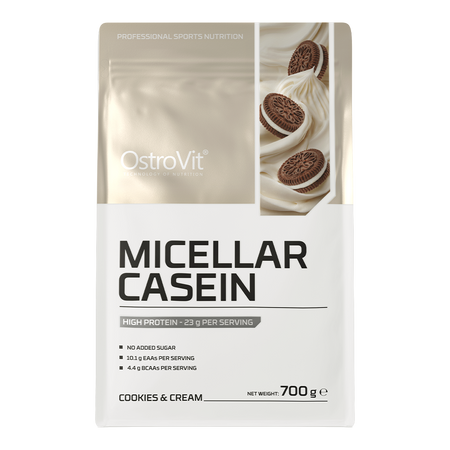 OstroVit Caseína Micelar es un suplemento dietético de alta calidad que proporciona una fuente de caseína micelar. Es una fórmula disponible en polvo, en varios sabores deliciosos, que no contiene azúcares añadidos. Es un producto diseñado para deportistas y personas con una mayor necesidad de proteínas.